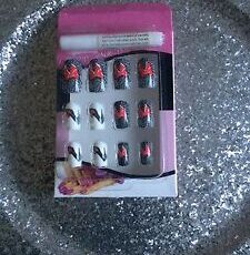 Kit Faux ongles nail art 12 capsules pret à poser + colle talon aiguille neuf