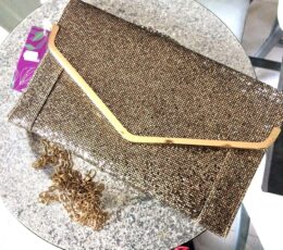 Sacoche pochette mariage cérèmonie clouter or et strass style bourse + bandoulière réglable neuf