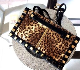 Sac A Main Sacoche Tres Rigide Classe Bandouliere Couleur Leopard Clouter Or